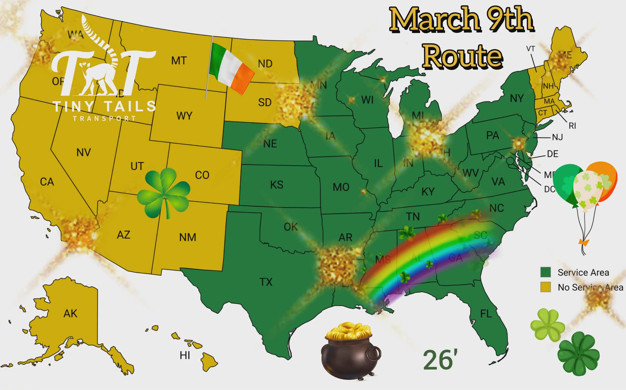 We have a March Ground Transport Route. They will not go to the states in yellow currently, because it can be dangerous to transport in Winter Weather. Arizona has been added to the list as well as New Mexico, Nevada, Utah and Colorado. She made the illustration a little early. In the meantime, we can look at Delta Cargo for those states, if the weather is good.